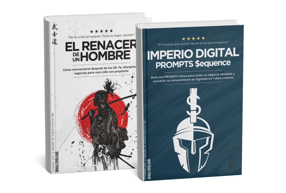 El proyecto que mejor representa esta visión son mis libros: El Renacer de un Hombre e Imperio Digital (PROMPT $equence). Son programas diseñados para hombres que quieren recuperar su fuerza, propósito y libertad mientras construyen un camino hacia la independencia personal y financiera.